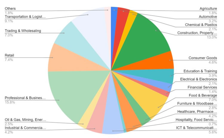 台湾贸易考察团的马来西亚中小企业代表的行业占比。